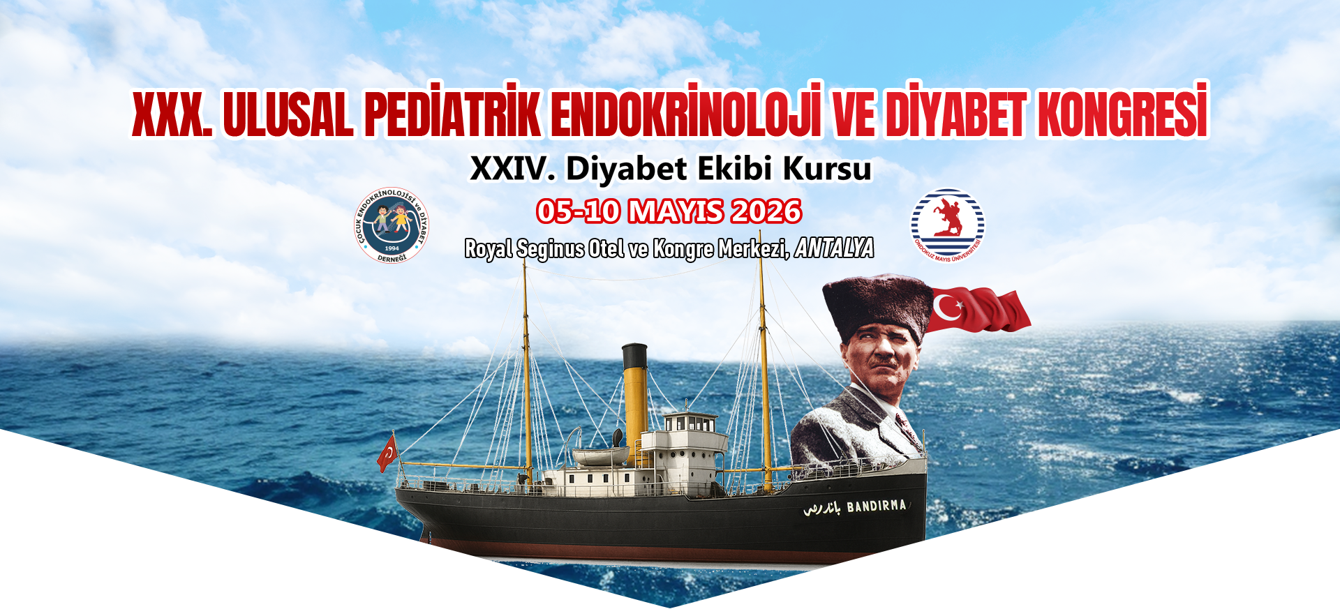 Çocuk Endokrinolojisi ve Diyabet Derneği tarafından düzenlenecek olan XXX. Ulusal Pediatrik Endokrinoloji ve Diyabet Kongresi’nin, 05 Mayıs- 10 Mayıs 2026 tarihleri arasında Royal Seginus Otel ve Kongre Merkezi, Antalya'da gerçekleşeceğini duyurmaktan mutluluk duymaktayız.