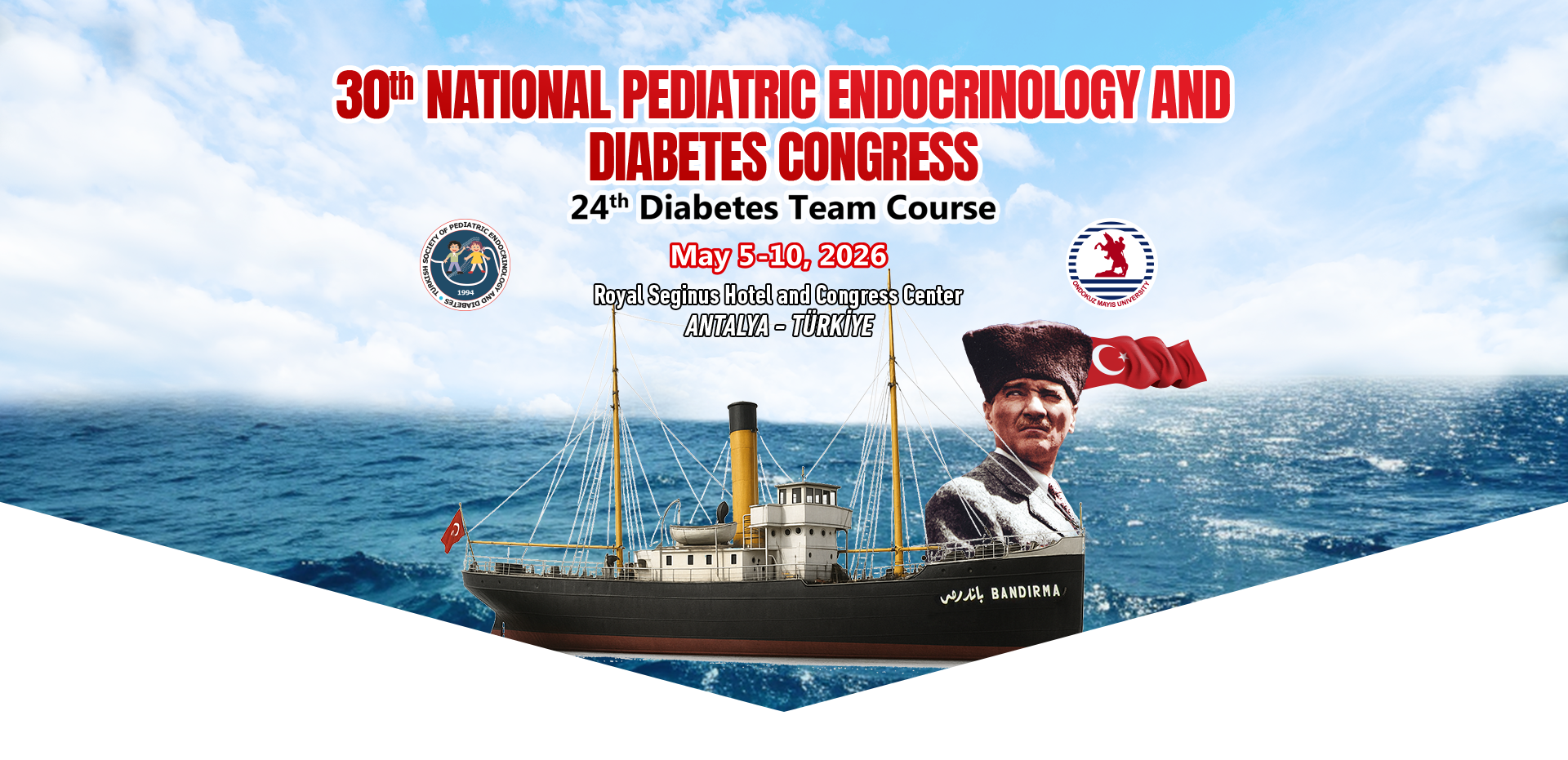 We are pleased to announce that the XXXth National Pediatric Endocrinology and Diabetes Congress, organized by the Turkish Society of Pediatric Endocrinology and Diabetes, will be held on 05–10 May 2026 at the Royal Seginus Hotel and Congress Center, Antalya.